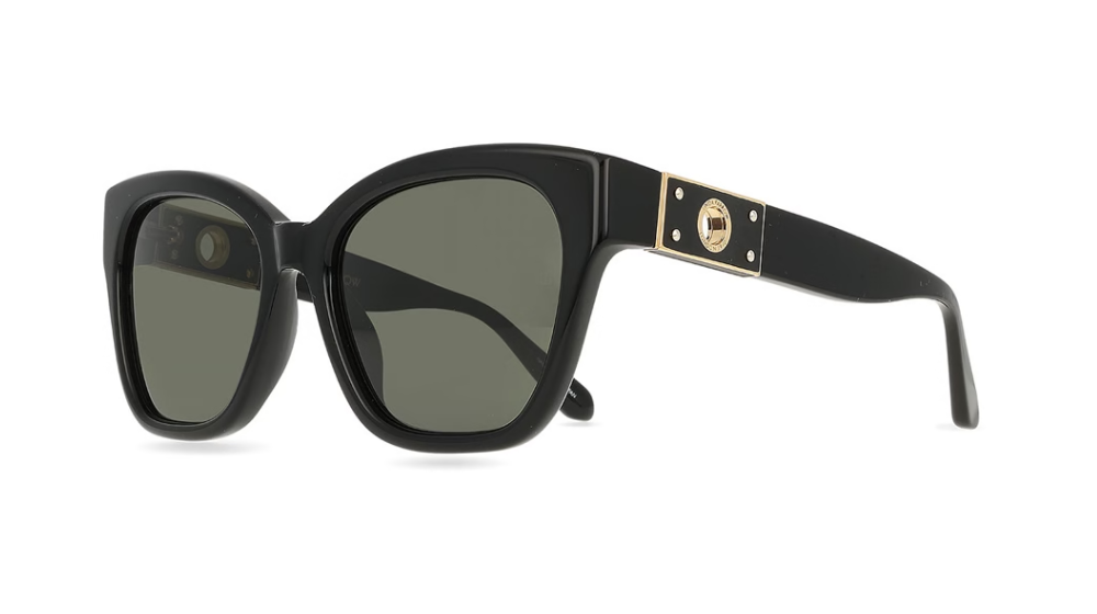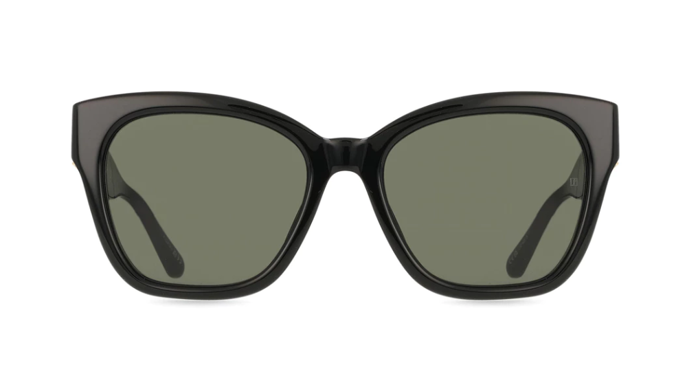 The large square Freya sunglasses are an example of simplicity executed with elegance. The frame is made of dark tortoiseshell acetate, hand-polished in Japan. The temple features the exclusive 22-carat light gold-plated eyelet.