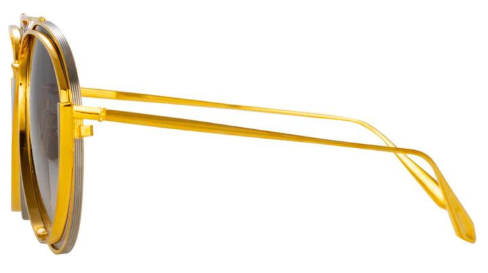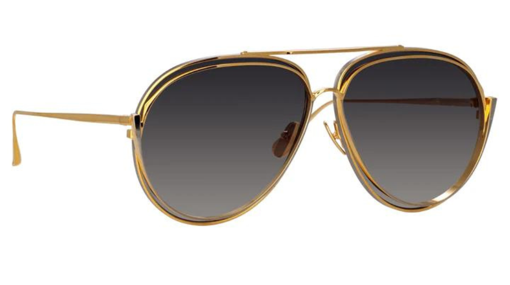 Os óculos de sol são feitos de titânio banhado a ouro amarelo de 22 quilates